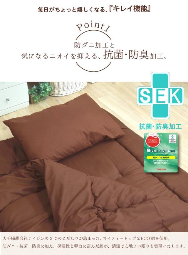 ・中材には防ダニ・抗菌防臭効果加工を施したTEIJINの綿を使用