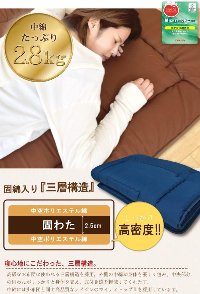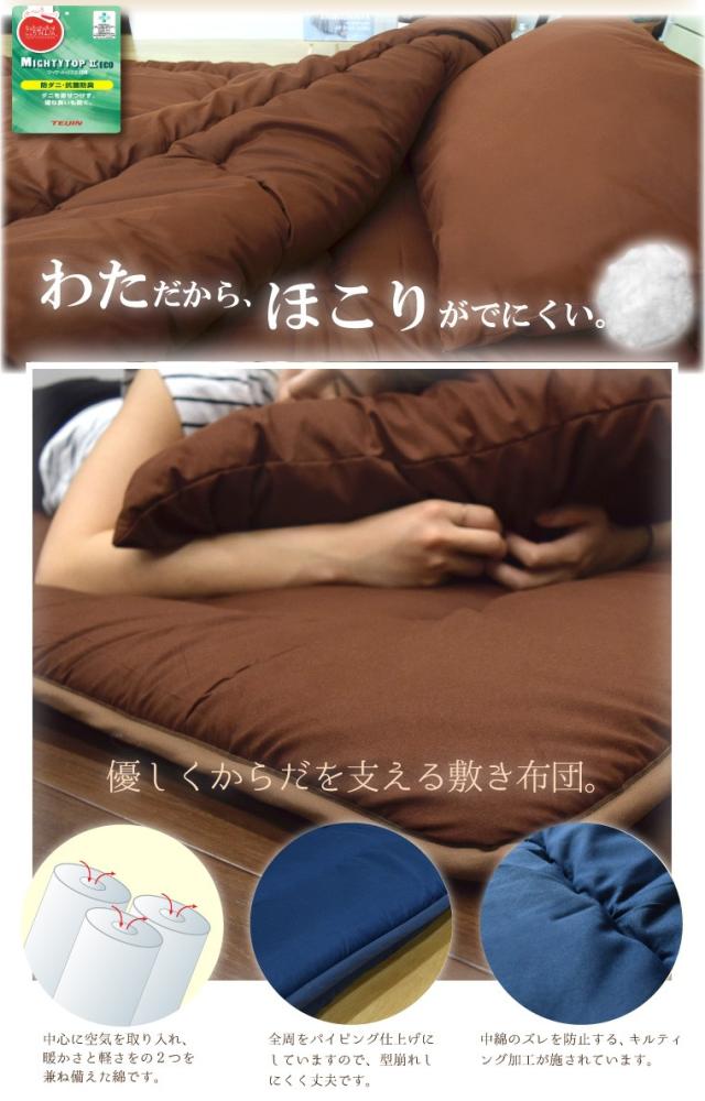 敷布団 日本製 敷き布団 単品 ダブル 防ダニ 抗菌 防臭 吸湿 国産 安心 約140×200cm テイジン TEIJIN 新生活 来客用 帰省 寝室 寝具 軽量 軽い 固わた マイティトップ