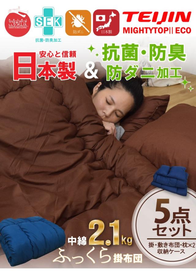 布団セット 日本製 6点セット ダブル 固綿入り 防ダニ 抗菌 防臭 吸湿 国産 安心 敷き布団 掛け布団 枕 圧縮収納袋 布団一式 テイジン TEIJIN 新生活 来客用 帰省 寝室 寝具 マイティトップ