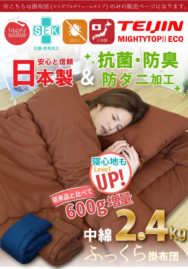 掛布団 日本製 掛け布団 単品 セミダブル ボリューム 防ダニ 抗菌 防臭 吸湿 国産 安心 約170×200cm テイジン TEIJIN 新生活 来客用 帰省 寝室 寝具 軽量 軽い マイティトップ