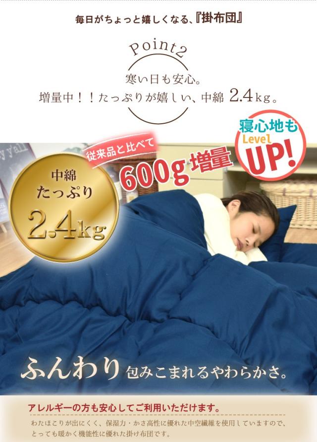 サイズ セミダブル ボリュームタイプ 約170cm×200cm(中綿2.4kg)