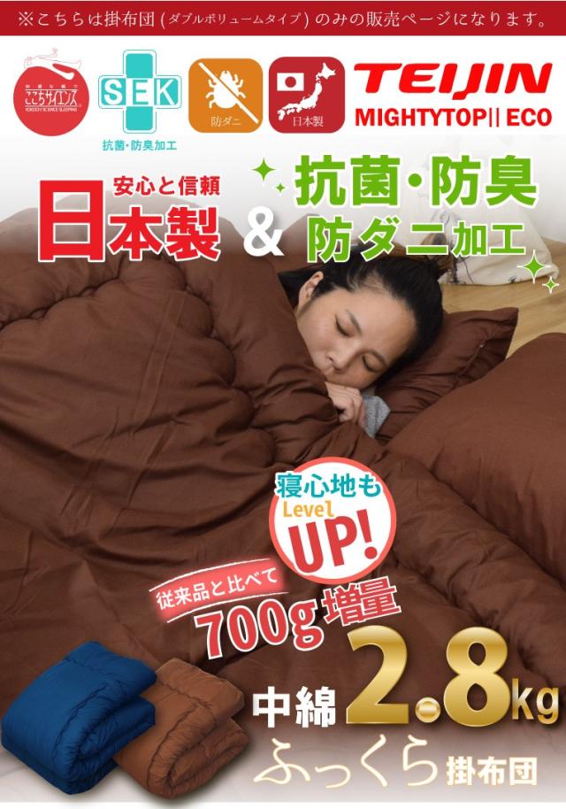 掛布団 日本製 掛け布団 単品 ダブル ボリューム 防ダニ 抗菌 防臭 吸湿 国産 安心 約190×200cm テイジン TEIJIN 新生活 来客用 帰省 寝室 寝具 軽量 軽い マイティトップ