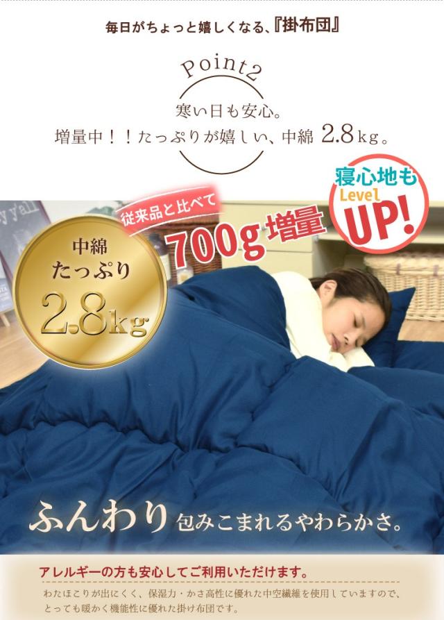 サイズ : 掛け布団ダブル ボリューム 約190cm×200cm(中綿2.4kg)