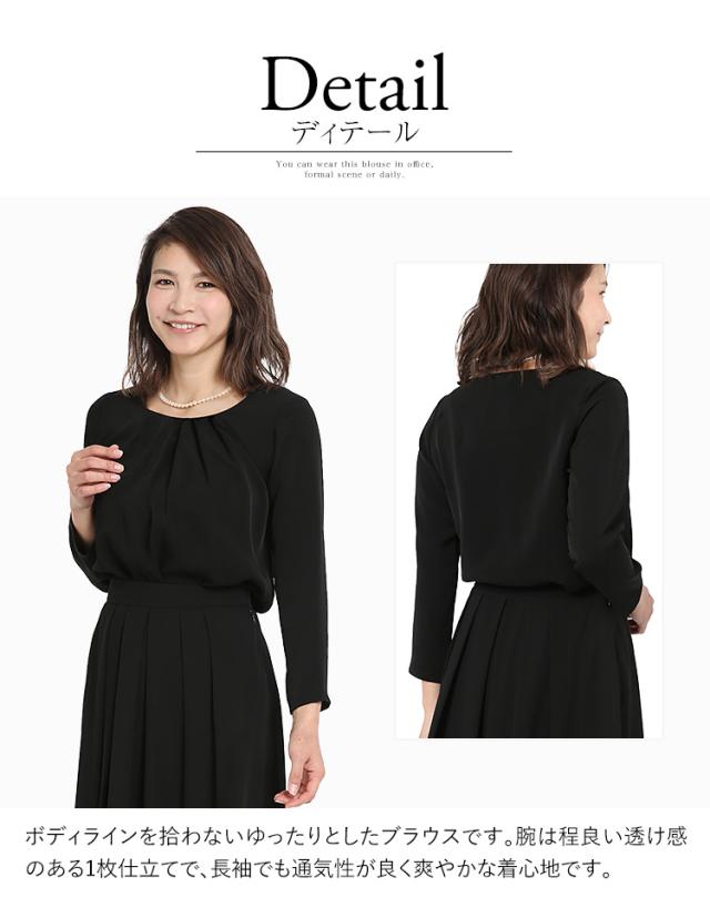ブラウス レディース 黒 長袖 シフォン 大きいサイズ 大きめ 夏用 ブラックフォーマル 喪服 礼服 フォーマル スーツ インナー 通勤 通勤着 ビジネス オフィス カジュアル 入園式 入学式 卒園式 卒業式 母 ママ 春 夏 秋 冬 ブラック FB-19BK ゆうパケット対応