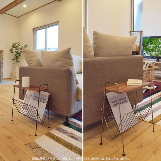 北海道・沖縄・離島配送不可 代引不可 サイドテーブル 木製 アイアン テーブル 高さ45cm マガジンラック付 シンプル おしゃれ