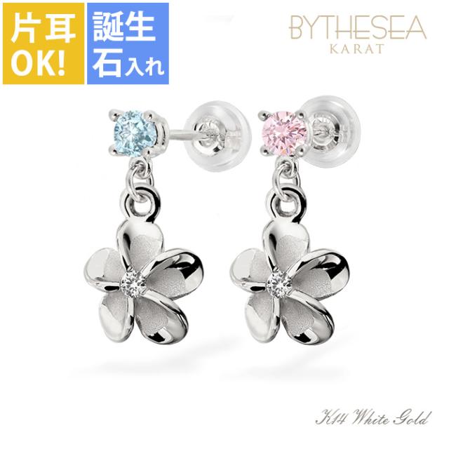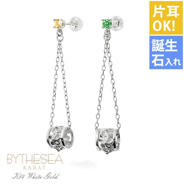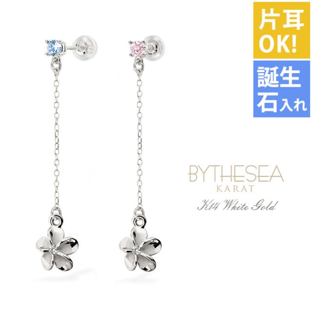 ハワイアンジュエリー ピアス ホワイトゴールド ピアス 誕生石 選べる スタッドピアス カラーストーン 片耳(1個)購入可 K14 14K シリコンキャッチ シンプル 20G ゲージ BY THE SEA バイザシー 彼女 妻 女性 レディース 誕生日 プレゼント バレンタイン 【品番:GE107W】