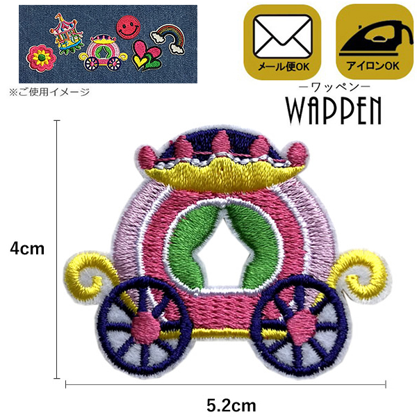 馬車 ワッペン 刺繍 アイロン接着 縦4.6cm×横3cm アイロンワッペン 手芸 アップリケ デコ カスタム パーツ カラフル母の日 プレゼント ギフト