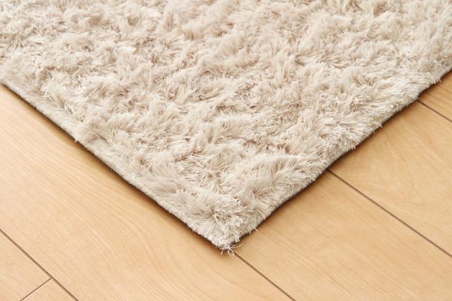 お部屋に合わせやすい高級感あふれるオーバーロック仕様のラグです。シャギー調の毛足は約18mmでふかふかとした感触とさらさらとした肌触りがとても気持ちいい商品です。裏面には滑りにくい加工を施しているためフローリングでも安心してご使用いただけます。7色という多色展開のため、お部屋に合った色をお選びいただけます。