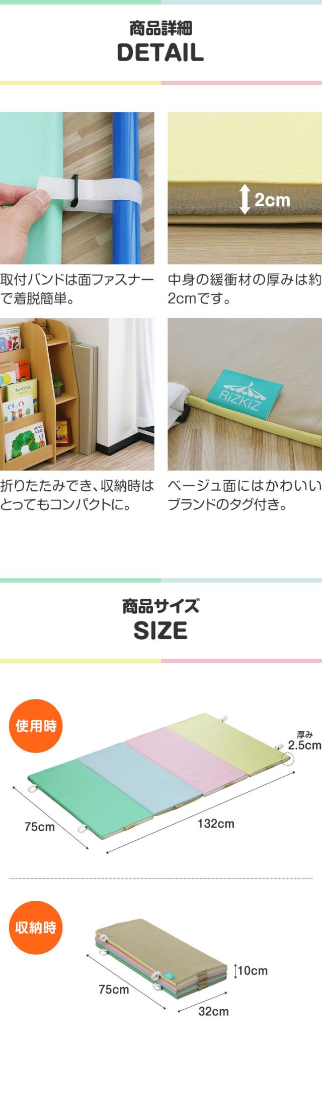 | サイズ: 使用時:(約)幅75cm×奥行132cm×厚み2.5cm 収納時:(約)幅75cm×奥行32cm×厚み10cm |