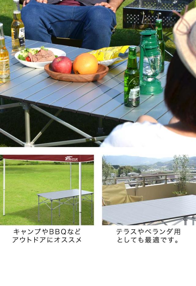 ロールテーブル レジャーテーブル 折りたたみ 幅 120cm 軽量 アルミ製 テーブル ローテーブル アウトドアテーブル キャンプ ピクニックテーブル バーベキューテーブル アウトドア キャンプ用品 ピクニック バーベキュー お花見 フィールドア 1年保証 [送料無料]