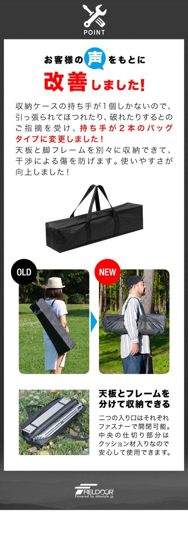 | 特記事項: ※平らで安全な場所を選び、凹凸、段差のある場所や不安定な場所での使用は避けてください。 ※テーブルの端やコーナー部分に手を乗せて体重をかけたり、片側にだけ重いものを載せないでください。 また、テーブルをゆすったりしないでください。 ※変形や変色を避ける為、使用後は汚れや水気をよく拭き取って、保管は雨や直射日光を避けてください。 |