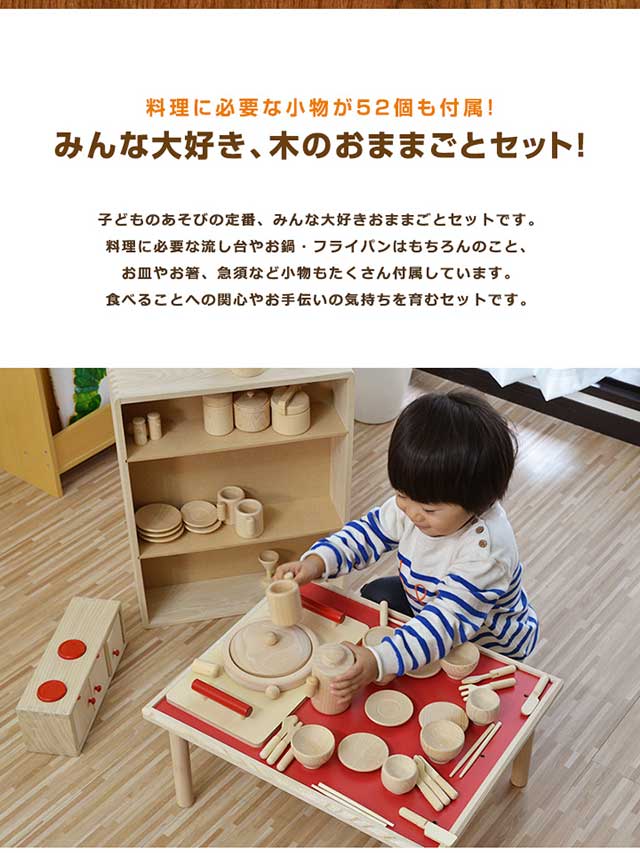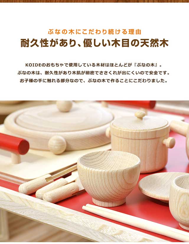 コイデ KOIDE 日本製 おもちゃ 玩具 ままごとセット M54 小物52個付属 ままごと キッチン テーブル おままごと 知育 室内 3歳 男の子 女の子 子供 幼児 ベビー 知育玩具 出産祝い 誕生日 ウッド 天然木 国産 1年保証 [送料無料]