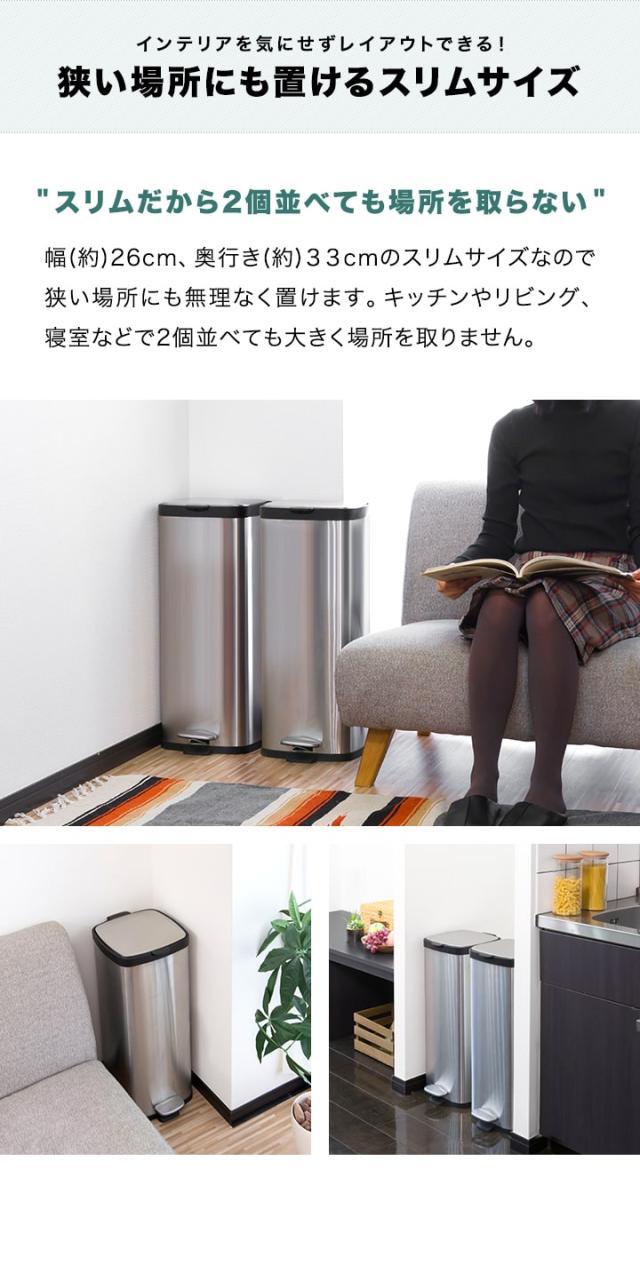 ゴミ箱 ふた付き 30リットル ペダル開閉式 ゴミ箱 縦型 スリム ステンレス [約]幅26cm x 奥行き25cm x 高さ66cm ダストボックス ばけつ ごみ箱 くず箱 臭い漏れ防止 おしゃれ レトロ かわいい 北欧 1年保証 [送料無料]