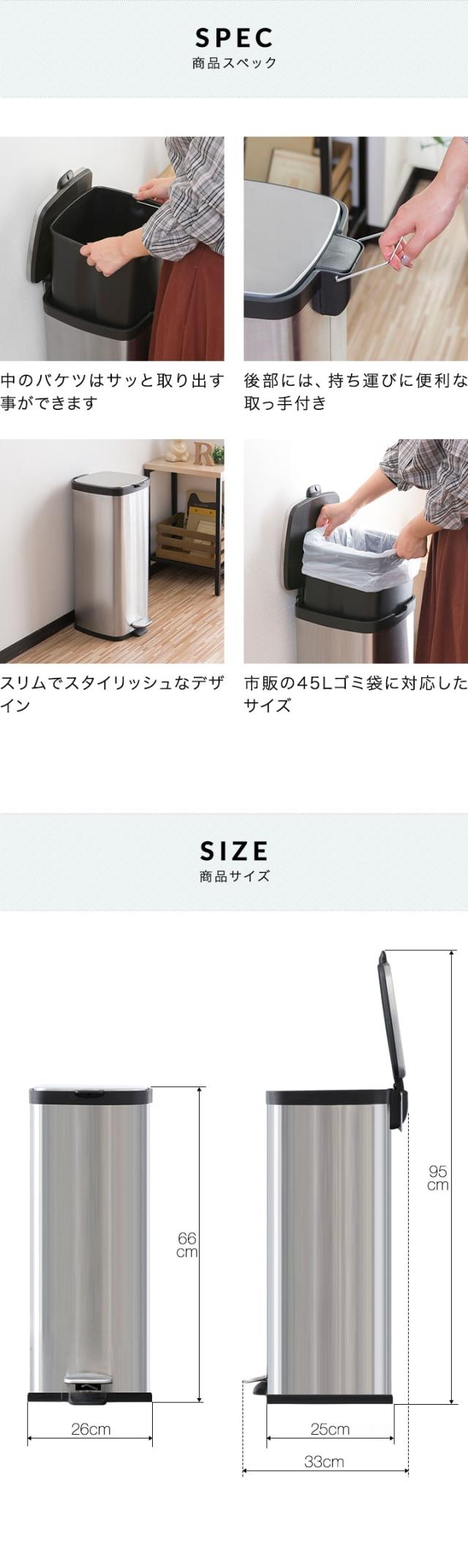 ゴミ箱 ごみ箱 塵箱 ダストボックス ペール くず箱 屑箱 屑入れ くず入れ ごみ箱 箱 芥箱 おしゃれ かわいい カフェスタイル インテリア リビング キッチン 寝室 ナチュラル 北欧 収納 縦型 分別 大容量 スクエア 四角 高さ65cm 45L 45リットル ゴミ袋対応 ペダル ペダル開閉 ペダル式 ペダルゴミ箱 ペダルペール 足踏み 足で開ける 足 におい 臭わない オムツ ふた付き フタ付き 蓋付き 袋 見えない 袋が見えない 袋見えない スリム ステンレス製 ステンレスペール シルバー 銀