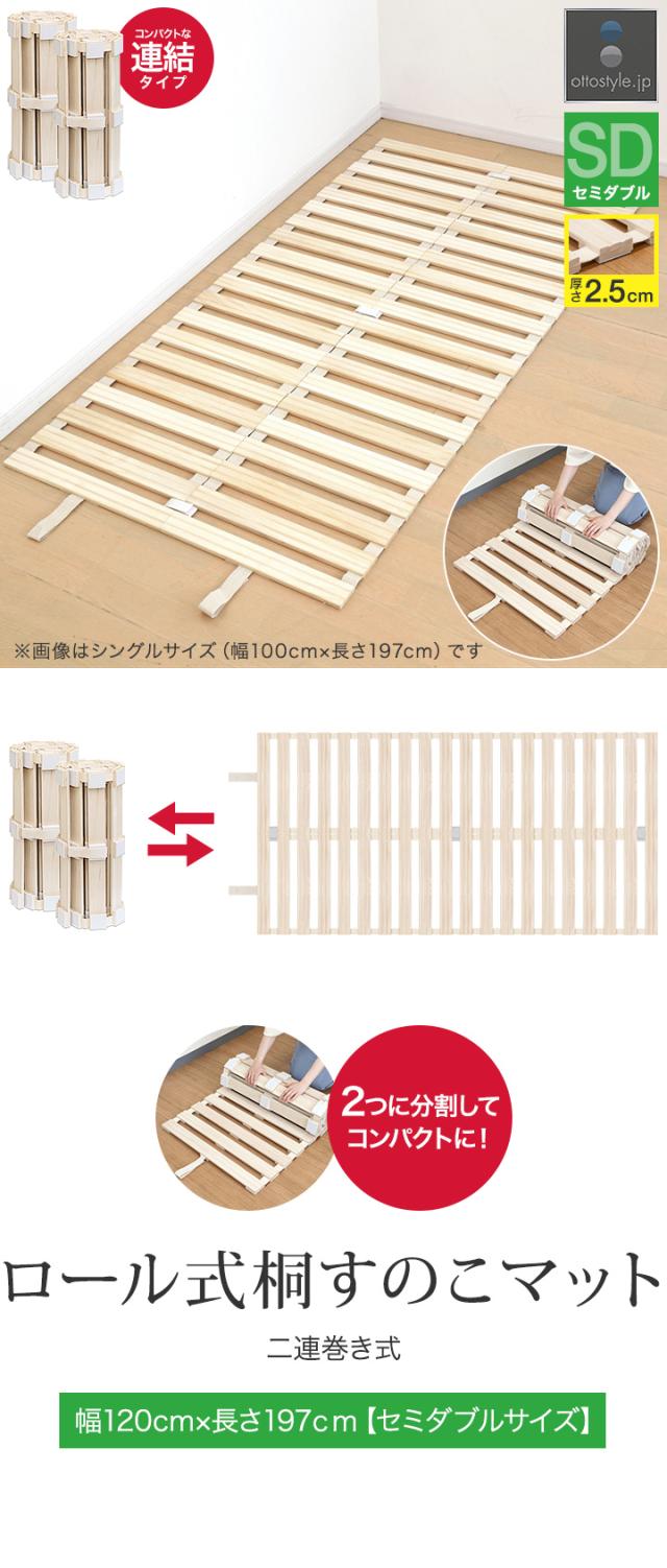 すのこベッド ロール式 すのこ セミダブル すのこマット 桐 押入れ収納 コンパクト 分割タイプ 天然桐無垢材 スノコ ベッド マット 折りたたみ 暑さ対策 湿気対策 カビ対策 来客用 ベッド 寝具 桐すのこ セミダブルサイズ 寝具 1年保証 [送料無料]