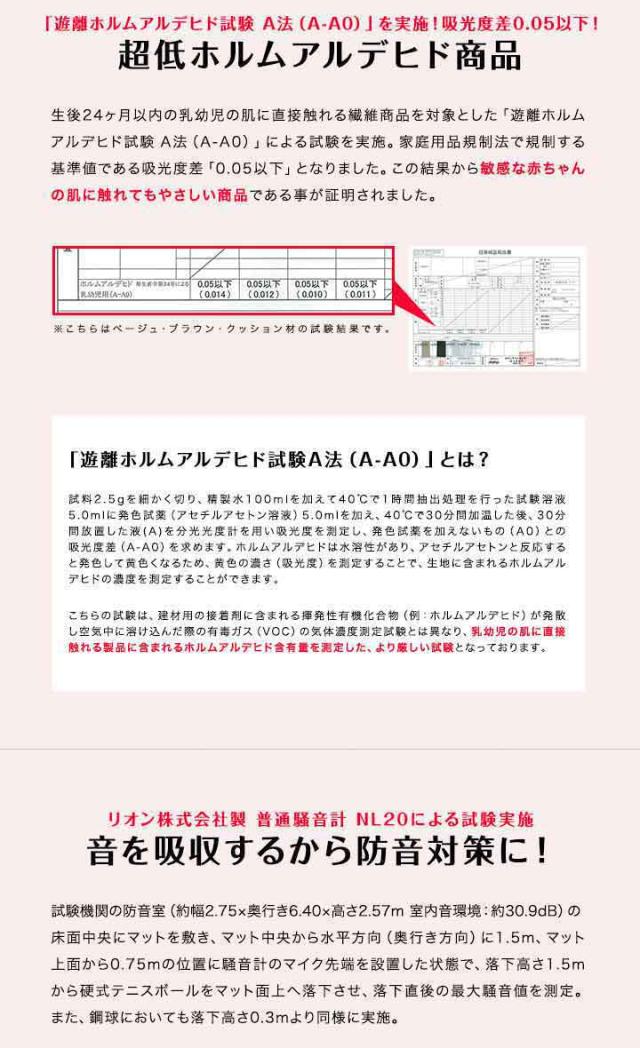 | 密度 | 床マット : 18kg/m3 正面・側面マット : 25kg/m3 |
