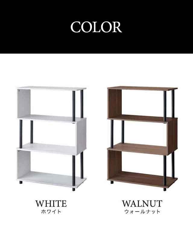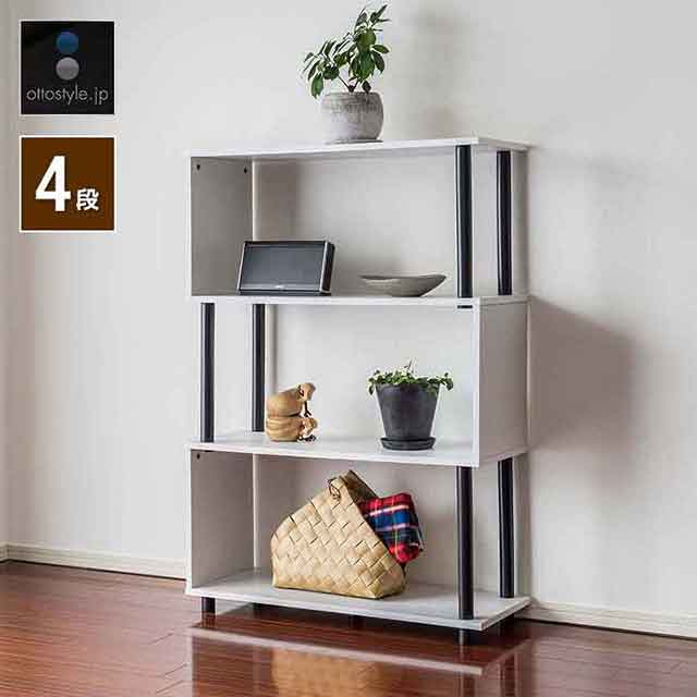 ラック S字 オープンラック 4段 スリム 薄型 おしゃれ 収納棚 シェルフ 飾り棚 幅80cm ディスプレイラック フリーラック 本棚 マガジンラック 収納 棚 木目 ウォールナット 白 ホワイト オープンシェルフ インテリア 北欧 1年保証 送料無料