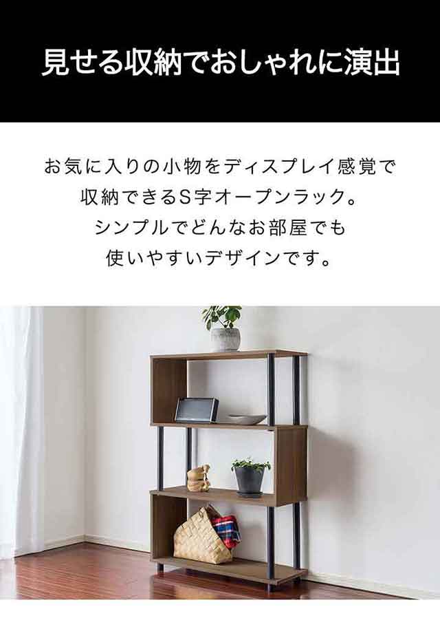 S字オープンラック ジグザグ インテリア 収納 オープンラック シェルフ オープンシェルフ 家具 住まい 収納 ラック 多目的ラック マルチラック 薄型 スリム 棚 飾り棚 オープン フリーボックス フリーラック カラーボックス ディスプレイラック サイドラック 収納棚 収納ラック 組み立て式 リビング ダイニング 省スペース コンパクト スリム 一人暮らし ワンルーム 新生活 本棚 書棚 ブックシェルフ CDラック DVDラック マガジンラック ブックラック 見せる収納 新生活 オシャレ おしゃれ お洒落 おすすめ オススメ シンプル ナチュラル モダン 北欧 北欧家具 カントリー カフェ風 和モダン アジアン カジュアル 男前 インダストリアル 西海岸 ウッドインテリア インテリア S字ラック オープンラック シリーズ 木目 オーク ウォールナット ウォルナット ブラウン 茶 ホワイト 白 インテリア・寝具・収納 収納家具 本棚・ラック・カラーボックス オープンラック