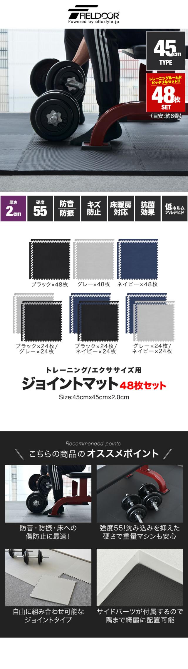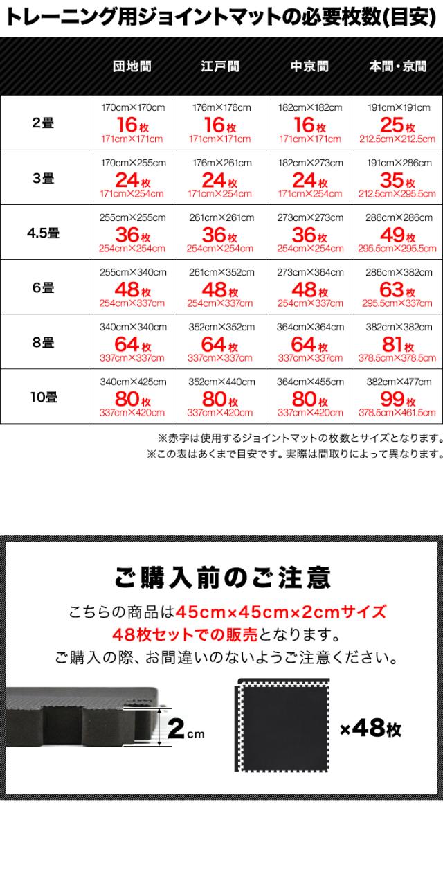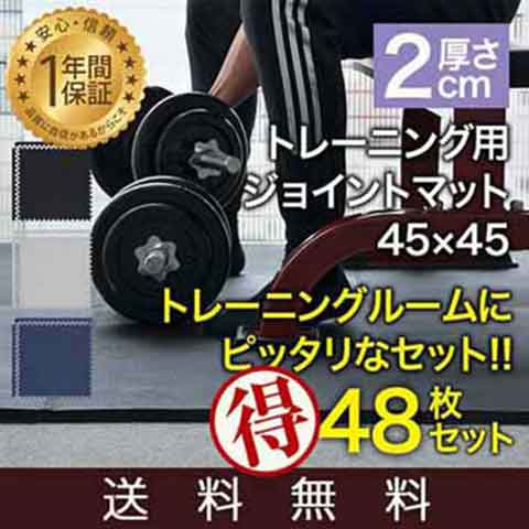 トレーニングマット 筋トレ マット 大判 45cm 48枚組 厚手 20mm ジョイントマット 防音 防振 キズ防止 ストレッチマット フィットネスマット ヨガマット ダイエット 筋トレグッズ トレーニング/エクササイズ用ジョイントマット 1年保証 送料無料