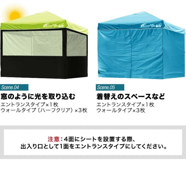 タープ テント タープテント用 サイドシート エントランスタイプ 横幕 2m 200 日よけ シェード オプション 2.0m タープテント専用サイドシート ウォールジップ/メッシュジップ フィールドア 【G3】 1年保証 [送料無料]