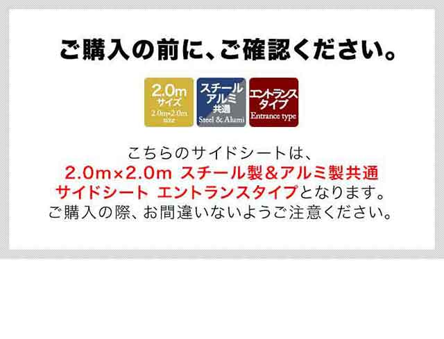 | サイズ: 2.0m×2.0m タープテント専用(スチール製・アルミ製共通) |