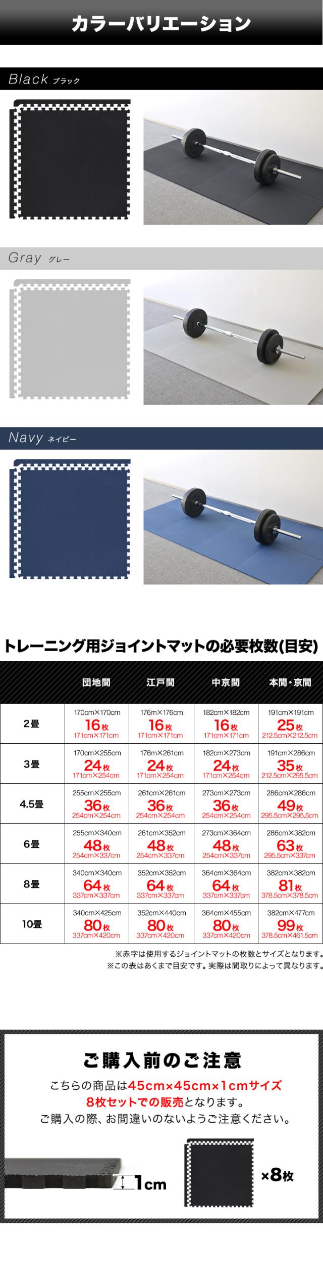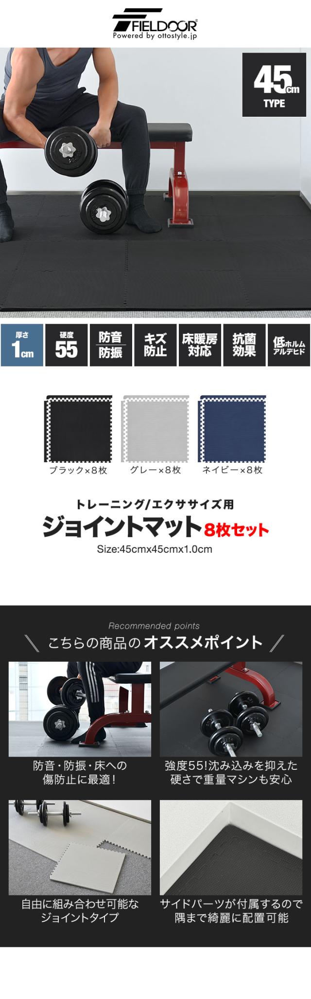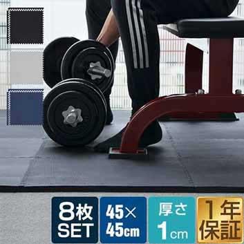 トレーニングマット 筋トレ マット 大判 45cm 8枚組 厚手 10mm ジョイントマット 防音 防振 キズ防止 ストレッチマット フィットネスマット ヨガマット ダイエット 筋トレグッズ トレーニング/エクササイズ用ジョイントマット 1年保証 送料無料