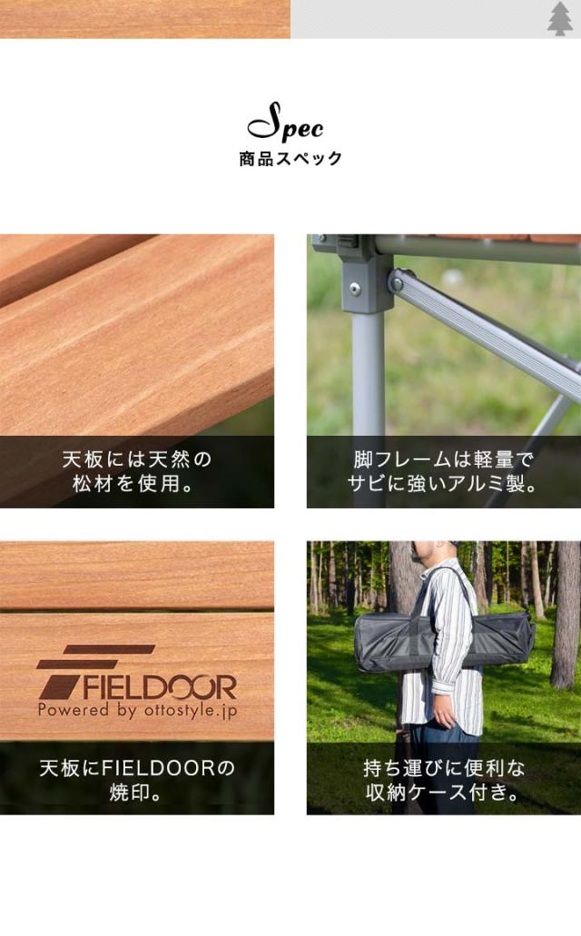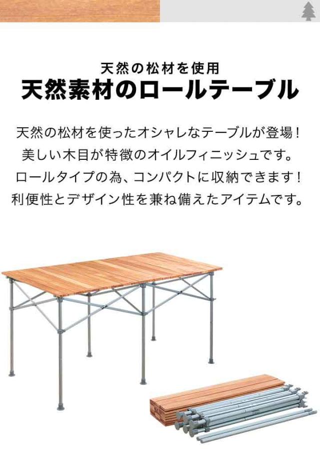レジャーテーブル ロールテーブル 折りたたみ 幅 120cm 天然木 木製 ピクニックテーブル テーブル ローテーブル アウトドアテーブル キャンプ アウトドア ピクニック バーベキュー ナチュラルウッド アルミ フィールドア 1年保証 [送料無料]