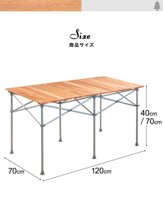 | サイズ: テーブル : (約)120cm×70cm×40cm / 70cm 収納時 : (約)70cm×22cm×14cm |