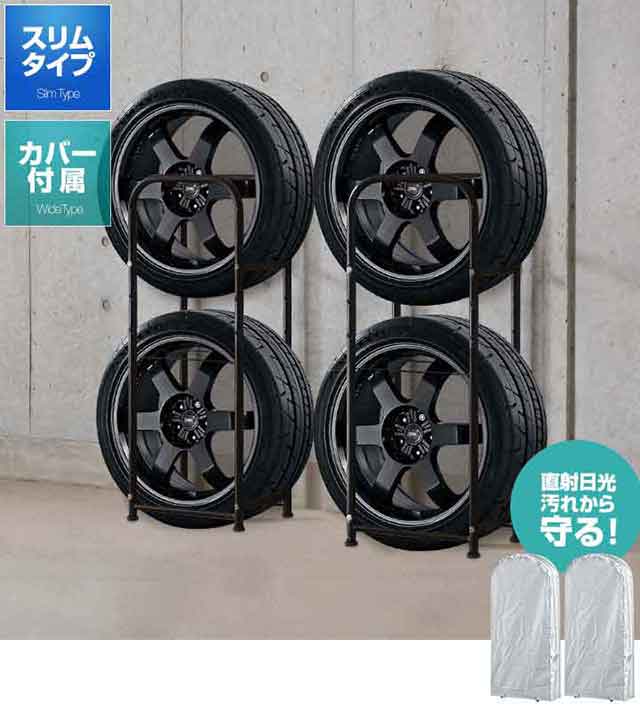 タイヤラック カバー付 タイヤスタンド タイヤ 収納 タイヤ収納ラック タイヤラックカバー カバー付き 2本 4本 タイヤ収納 物置 奥行 スリムサイズ タイヤカバー キャスター 薄型 タイヤラック 奥行30cmスリムタイプ 2個組 1年保証 [送料無料]