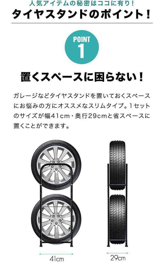 タイヤを保管する時に大事なのは、直射日光に当たらないこと。このタイヤスタンドには専用カバーが付属しているので、直射日光や雨・ホコリなどから守ることができます。