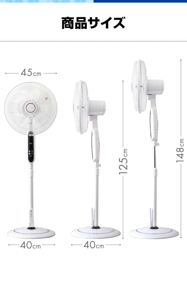 当商品は羽根径40cm・5枚羽根という 大きなファンで風量もしっかり確保。 そよ風のように快適なリズム風をはじめ 首振り機能など充実の機能を搭載しています。