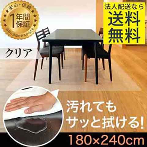 【法人のみ無料配送】PVC製 クリア ダイニングマット 180×240cm 1.5mm厚 ダイニングカーペット ダイニングラグ クリアマット 透明マット 240cm キッチンマット 下敷きマット フロアマット カット 床暖房 防水 撥水 おしゃれ 【個人宅配送は+2000円】