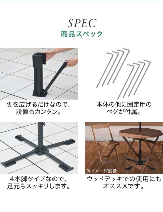 | 付属品: 折りたたみパラソルベース×1 / ペグ×8 |