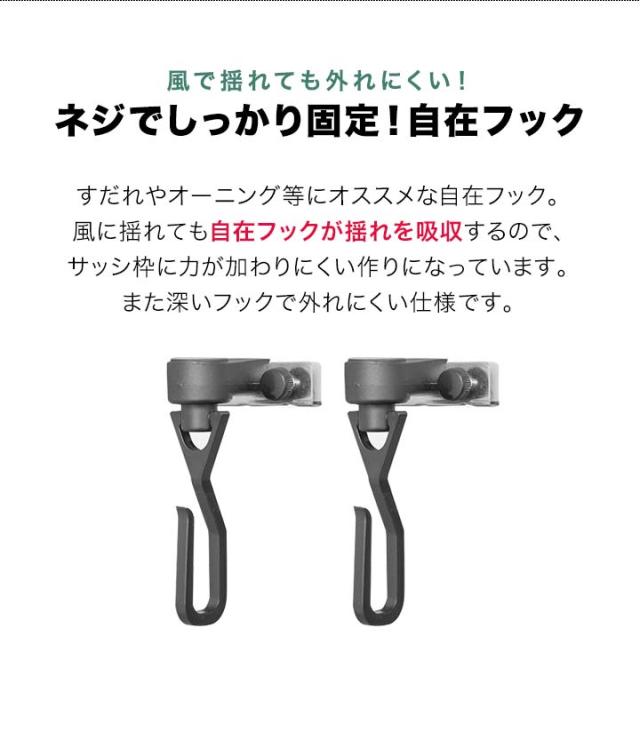 すだれ フック 2個セット すだれ オーニング用 自在フック すだれ フック サッシ すだれ 取り付け 金具 日よけ フック 窓 日除け よしず たてす 窓 庭 設置 簡単 1年保証