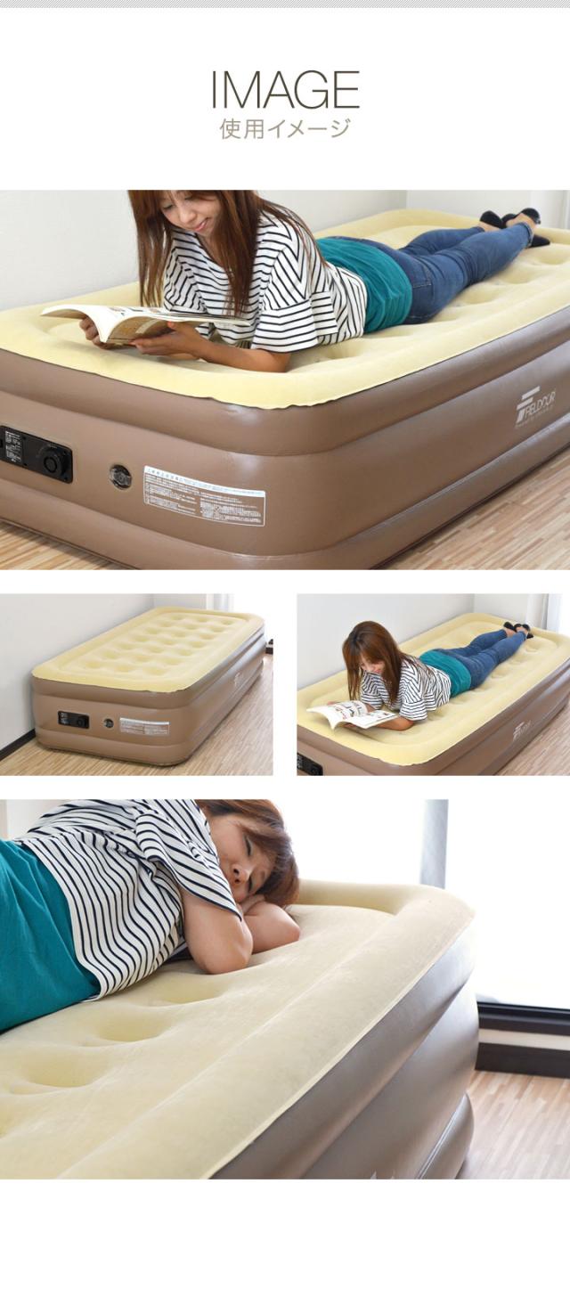 エアーマット エアーベッド シングル S 電動 ポンプ内蔵 FIELDOOR エアマット エアベット 来客用 普段使い 災害 防災 車中泊 昼寝 幅100cm×190cm 高さ45cm 簡易ベッド ベッド エアーマットレス マットレス キャンプ 折りたたみ 1年保証 [送料無料]