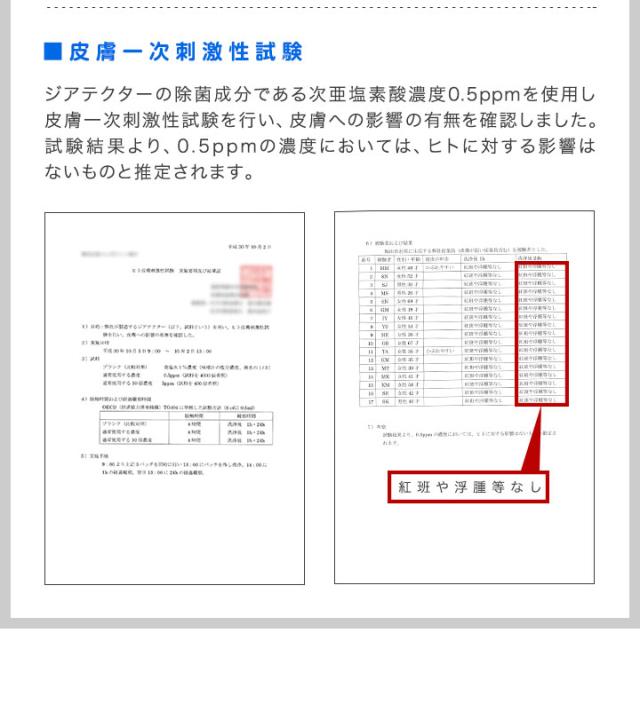 「ジアテクターP」を水により希釈する事で、次亜塩素酸水が作れます。次亜塩素酸水は普段の衛生管理から、ウイルス対策・雑菌対策など様々な用途でご利用いただけます。
