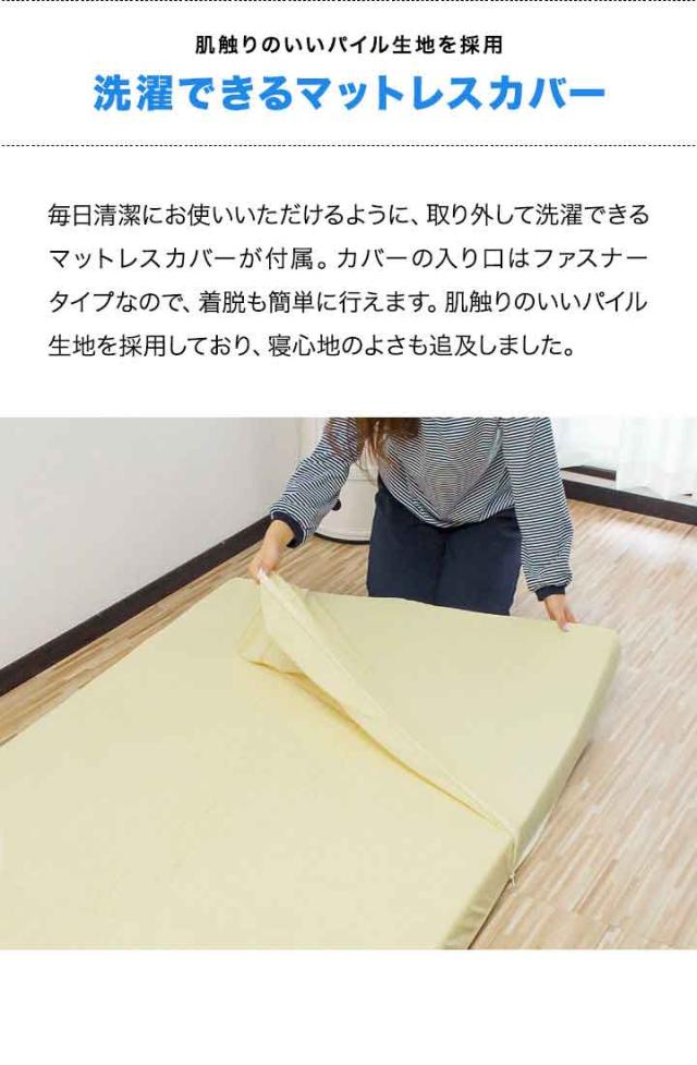 | 特記事項: ※圧縮梱包されたままの状態で長期間保管した場合、マットレスが復元できなくなってしまいます。商品到着後、1週間以内に必ず圧縮から開放をして頂くようにお願いします。 ※製品の臭いが気になりましたら、風通しの良いところで脱臭してください。この臭いは素材のウレタンによるもので無害です。臭いに敏感な方は十分ご検討の上、ご購入をお願いいたします。 ※マットの硬さは温度によって変わってきます。また、硬さの感じ方には個人差があります。 ※カバーは取り外して洗濯ができますが、マットレス本体は洗濯しないでください。 |