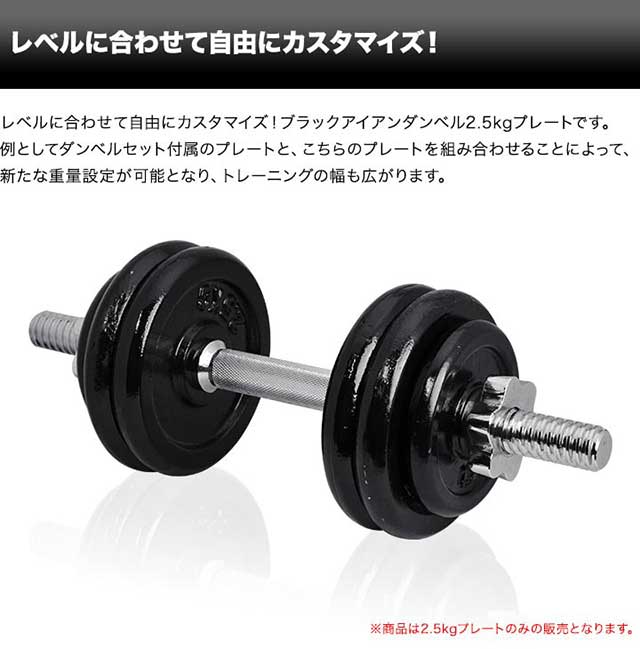ダンベル バーベル 用 プレート 2.5kg 2個セット ブラックアイアン 追加プレート 追加 ダンベルプレート バーベルシャフト 用 アイアンダンベル 筋トレ トレーニング 重り 交換 パーツ カスタマイズ オプション 計5kg 1年保証 [送料無料]