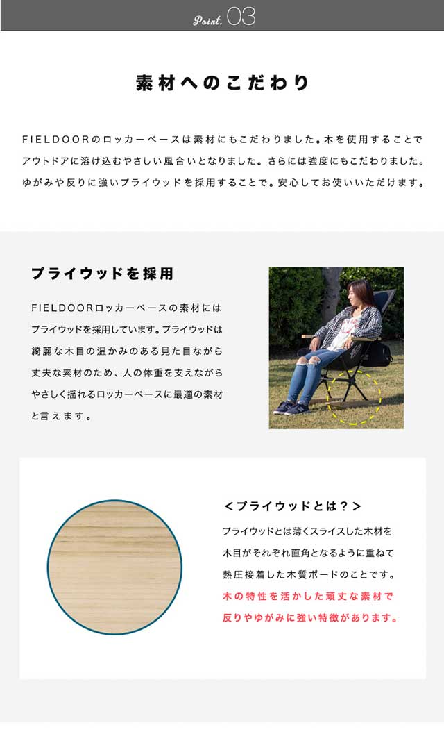 | どんな場所でもロッキングチェアに座っているような優雅な時間を FIELDOOR ポータブルチェア ハイバック用 ロッカーベース 【ナチュラル】 |
