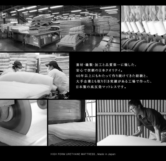 40年以上も製品を作り続けてきた日本国内の工場にて一貫して生産。ウレタンの加工から検針作業まで日本国内で行っています。この確かな経験と実績が信頼ある"日本クオリティ"を作り出します。