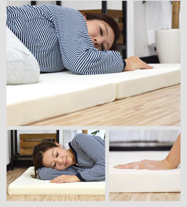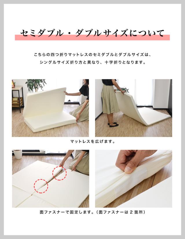 四つ折りタイプは持ち運びしやすく、コンパクトに収納可能。2段ベッドやロフトベッド、押し入れからの出し入れもラクラク。普段は使用せず、来客用としてもオススメです。