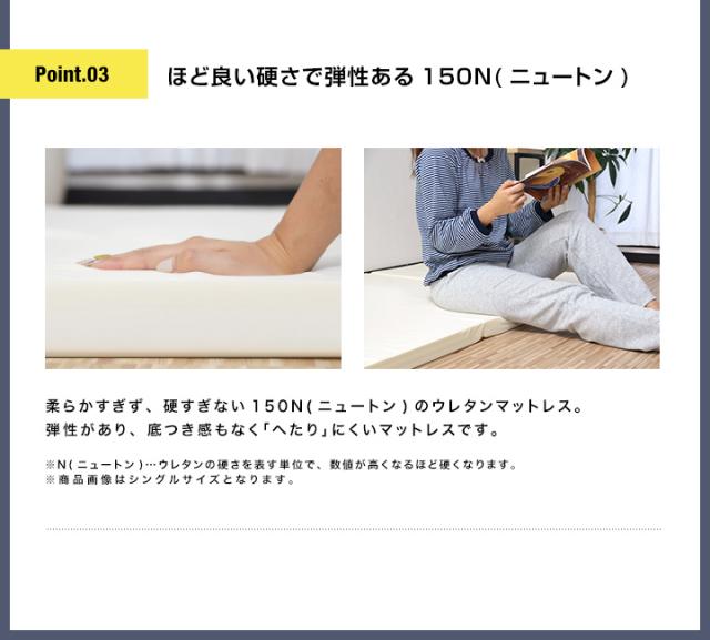 LayerName: 柔らかすぎず、硬すぎない150N(ニュートン)のウレタンマットレス。 弾性があり、底つき感もなく「へたり」にくいマットレスです
