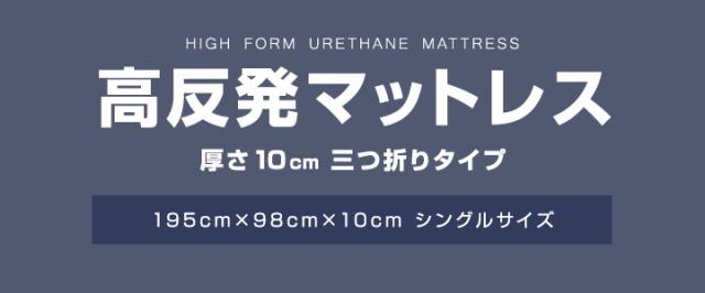 マットレス 日本製シングル 高反発 10cm 三つ折り 高反発マットレス 折りたたみ 高密度24D 150N マット ベッド 敷き布団 低反発マットレス と使い替えても厚さ10cm 高反発マット 寝具 3つ折り 国産 1年保証 [送料無料]