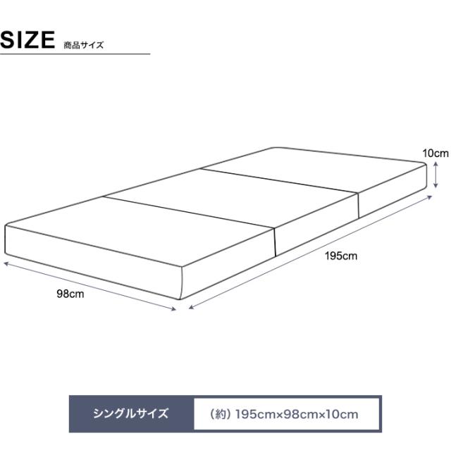 | サイズ: (約)195cm×98cm×10cm シングルサイズ |