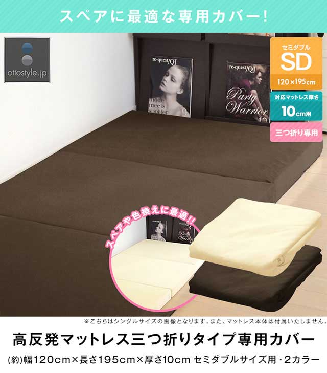 【マットレスと同時購入で送料無料!】マットレスカバー 厚さ10cm 三つ折り セミダブル 高反発マットレス 三つ折りタイプ 専用スペアカバー パイル ベッドカバー ベッドシーツ 3つ折り 1年保証 [送料無料]