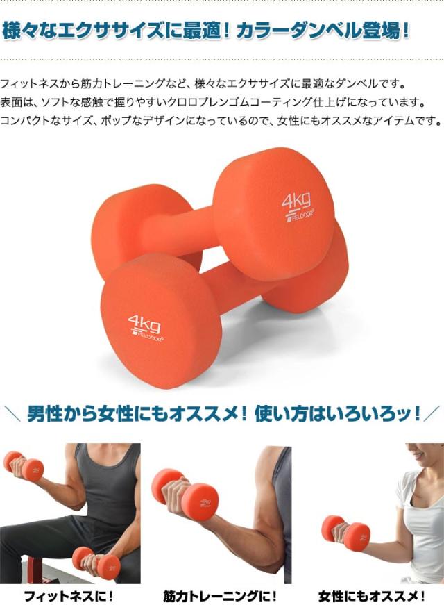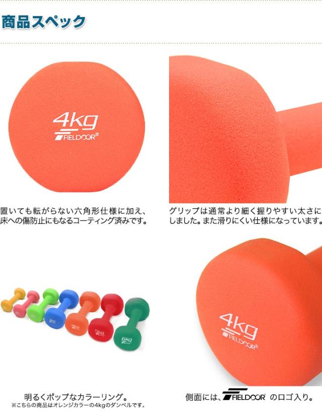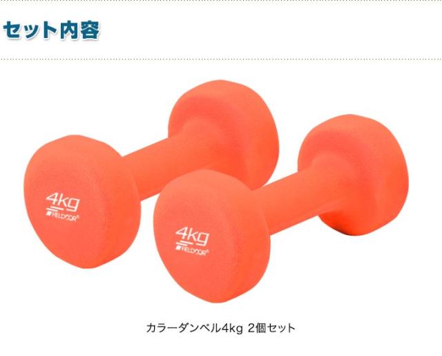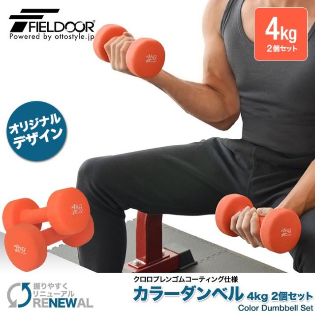 | クロロプレンゴムコーティングで握りやすい!エクササイズに最適なダンベル! Fieldoor カラーダンベル 4kg×2個セット |