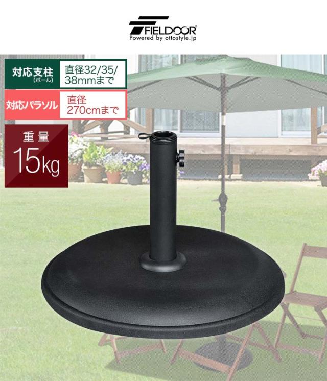 パラソル用ベース 丸型 15kg パラソルスタンド 口径キャップ2種付 3サイズ支柱対応 270cmまで スチール/セメント 円 丸 重り ベーススタンド 土台 ガーデンパラソル用 ビーチパラソル用 ウエイト FIELDOOR ※パラソル本体別売 1年保証 送料無料