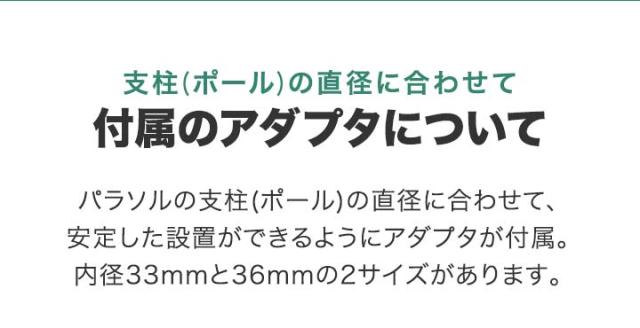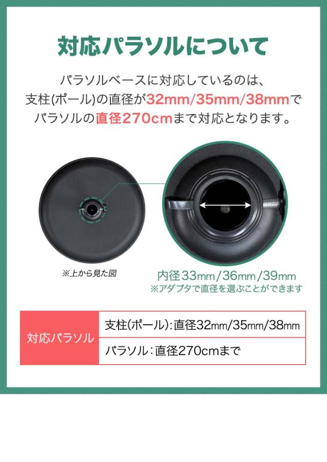 | 対応サイズ: ・支柱径32mm/35mm/38mm ・パラソル直径270cmまで |
