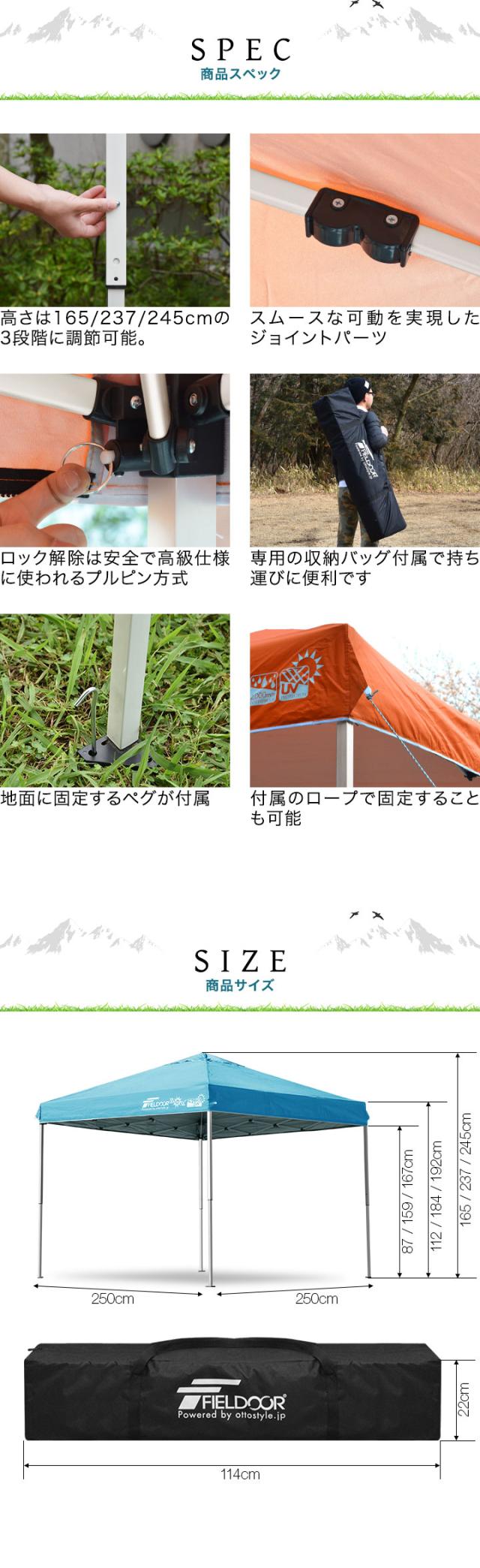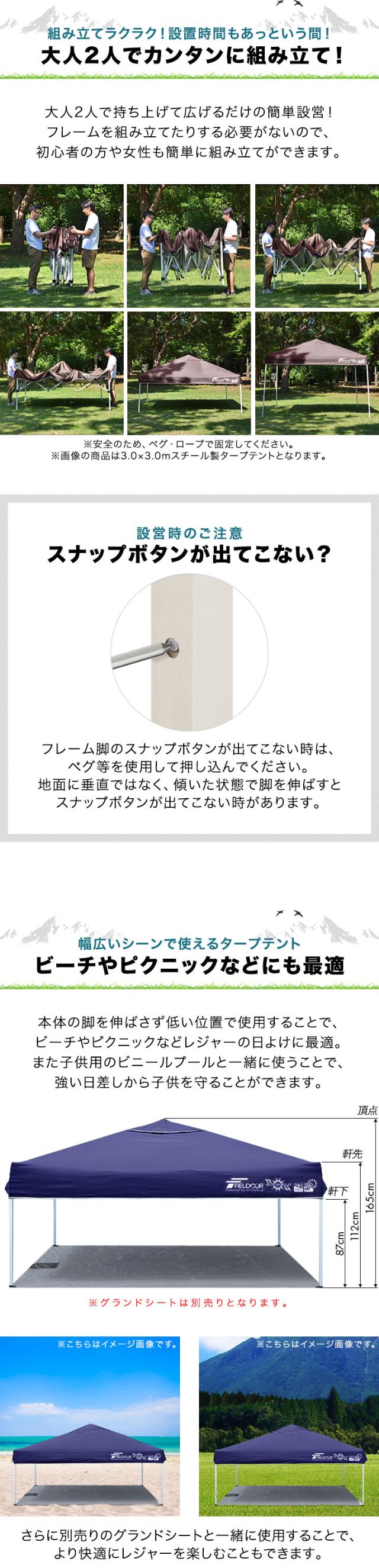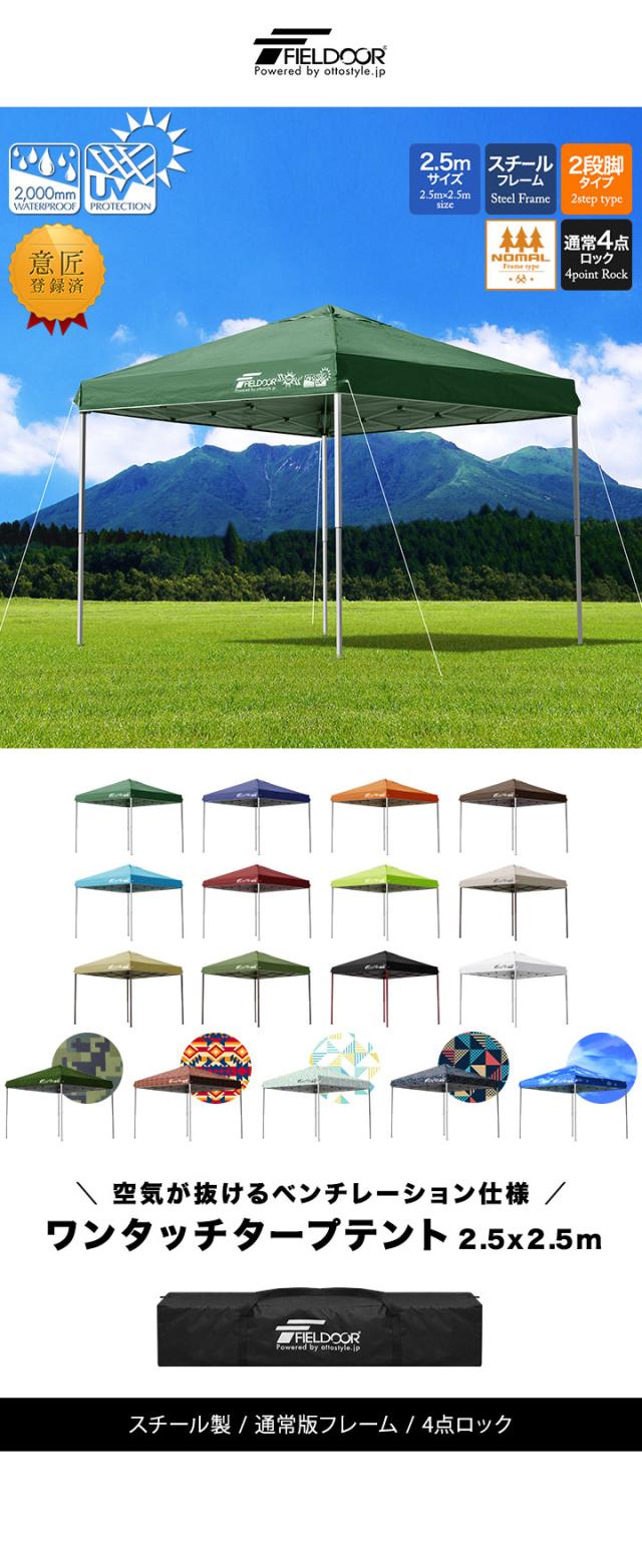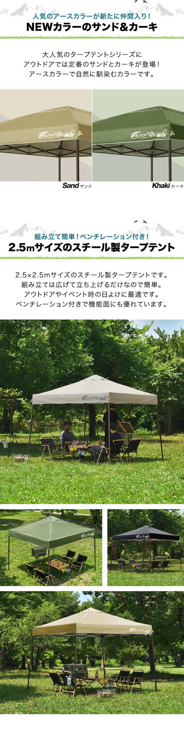 タープテント 2.5m スチール テント タープ 250 ワンタッチ ワンタッチテント ワンタッチタープ UV加工 収納バッグ付 タープ ワンタッチタープテント 日よけ イベント アウトドア キャンプ バーベキュー フィールドア 【G3】 1年保証 [送料無料]