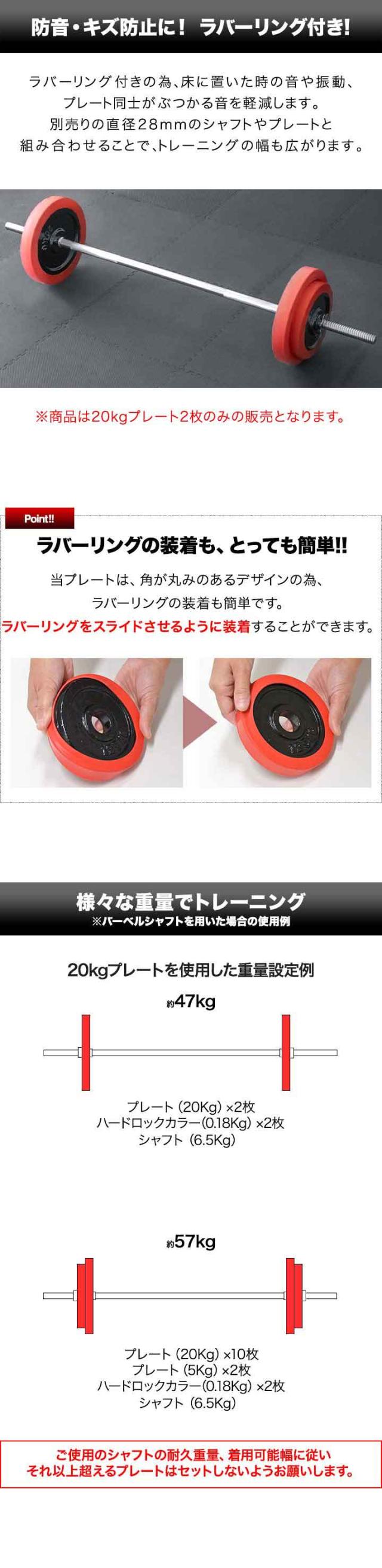 | セット内容: ・20kgプレート×2 ・20kgプレート用ラバーリング×2 |